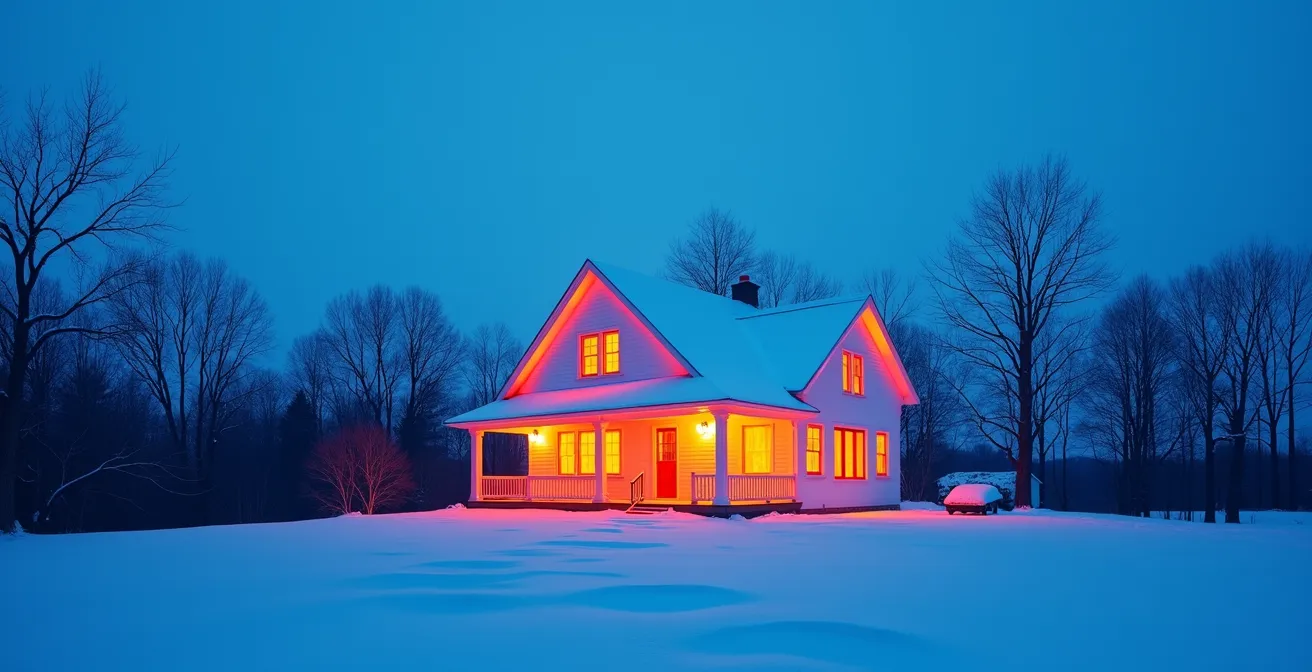 C’est ici que le « manteau » de la maison prend tout son sens. Une enveloppe bien isolée et sans ponts thermiques garantit que la température de surface des murs intérieurs reste proche de la température de l’air ambiant. En éliminant les parois froides, on coupe cette voie de déperdition de chaleur par rayonnement. Le résultat est une sensation de confort homogène et enveloppant. Vous pouvez alors maintenir le thermostat à une température plus basse (par exemple 19°C ou 20°C) tout en vous sentant parfaitement à l’aise, ce qui génère des économies d’énergie substantielles. C’est la physique du confort en action : une bonne enveloppe ne fait pas que garder la chaleur dans la maison, elle garde aussi la vôtre sur vous.